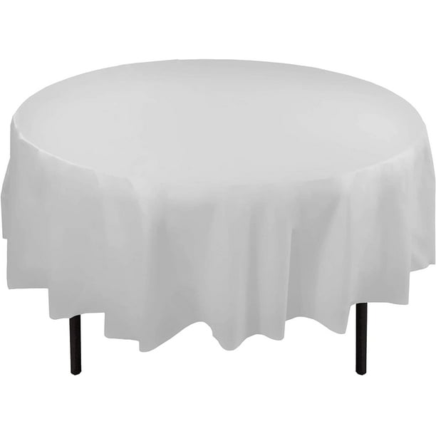 White Disposable Table Cloth (10 Pack), £8.99 at Amazon White Disposable Tablecloth 1m+ visitors in the past month Keep your tables nice and clean at your upcoming party with the help of spotlight's tablecloths and plastic table covers. White round plastic tablecloths will cover any table up to 7 feet. Perfect for keeping your tables clean in parties. This 12 pack of 84 in. Just put on a sheet of table cloth. White Disposable Tablecloth.